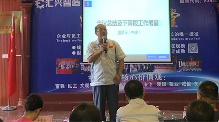最后,由鐘輝董事長(zhǎng)作會(huì)議總結(jié)及下階段工作展望。董事長(zhǎng)鐘輝表示:“陪伴才是最長(zhǎng)情的告白”感謝各位同事及貴賓對(duì)匯興智造一如既往的支持。企業(yè)的發(fā)展離不開每一位的努力,未來(lái)匯興智造將快速發(fā)展的階段。沿著老路去不了新的地方,正如我們會(huì)議場(chǎng)上唱響的歌曲,相信我們創(chuàng)造奇跡。會(huì)議取得圓滿成功,集眾智,匯眾力,搶時(shí)間,抓機(jī)遇,全體匯興人,一諾千金,奮斗到底!