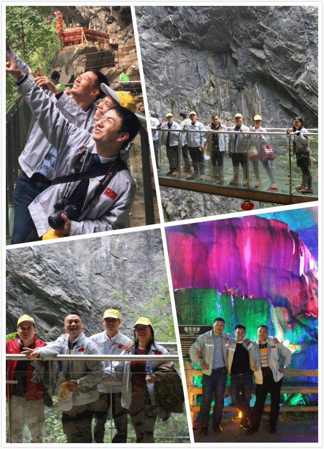 洞天仙境內(nèi),還有一景——懸空玻璃棧道,懸空洞內(nèi)絕壁上高達(dá)百米。沿著石梯攀上棧道石臺(tái),更能360度欣賞洞內(nèi)千變?nèi)f化的奇石,“夢(mèng)想之旅”的團(tuán)隊(duì)成員們走在棧道上,沒(méi)有感到步步驚心,而是豪情萬(wàn)丈,欲與天公試比高。