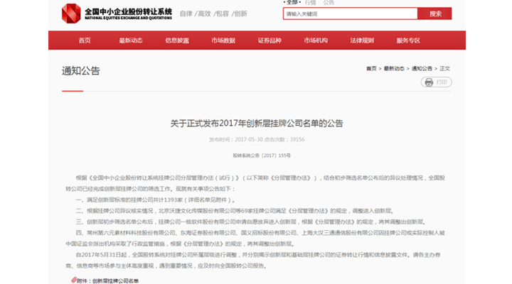廣東匯興精工智造股份有限公司自2016年12月30日成功掛牌新三板后又傳來一大喜訊,5月30日,全國中小企業(yè)股份轉讓系統(tǒng)(以下簡稱“全國股轉系統(tǒng)”)公布了2017年創(chuàng)新層掛牌公司名單,廣東匯興精工智造股份有限公司(股票代碼:839258)成功從全國一萬余家新三板掛牌企業(yè)中脫穎而出,躋入新三板“優(yōu)等生”行列。