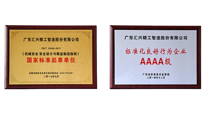 2017830日,經(jīng)廣東省質(zhì)量技術(shù)監(jiān)督局、省標(biāo)準(zhǔn)化協(xié)會專家組的現(xiàn)場評審,廣東匯興精工智造股份有限公司(股票代碼:839258)再度獲評為“AAAA級標(biāo)準(zhǔn)化良好行為企業(yè)及《機(jī)械安全 安全設(shè)計與精益制造指南》國家標(biāo)準(zhǔn)起草單位,在行業(yè)中到示范引領(lǐng)作用。