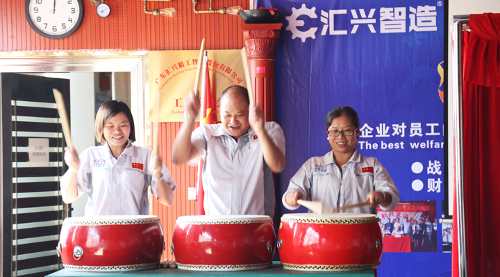 東莞市大嶺山鎮(zhèn)工商行政管理局袁洪副局長,張昕栓股長,匯興智造董事長鐘輝,上市辦辛主任,監(jiān)事長呂常垣,財務總監(jiān)呂漪,行政總監(jiān)黃艷,營銷總監(jiān)楊思等一同舉行簡單而隆重的揭牌儀式。鐘董事長對袁局長的到來表示熱烈歡迎,并且深情感謝大嶺山鎮(zhèn)這片樂土,匯興智造能取得一系列的資質和榮譽,離不開政府各級部門認可與肯定,離不開大嶺山這片土壤很好的營商環(huán)境。袁局長在儀式上總結發(fā)言,“匯興智造是一個非常有朝氣的企業(yè),用士氣鼓來鼓舞士氣,確實令人耳目一新與眾不同,能做到企業(yè)文化和企業(yè)發(fā)展融合在一起,這真的很少見,很有才氣,很有情懷,而且再獲“守重”資質,更說明公司是一家誠信經營非常有前景的好企業(yè)?!睆V東省守合同重信用企業(yè)”榮譽稱號是對企業(yè)資質規(guī)模一種肯定,其實更是金字招牌,我們也希望工商部門與企業(yè)有更多的互動。
