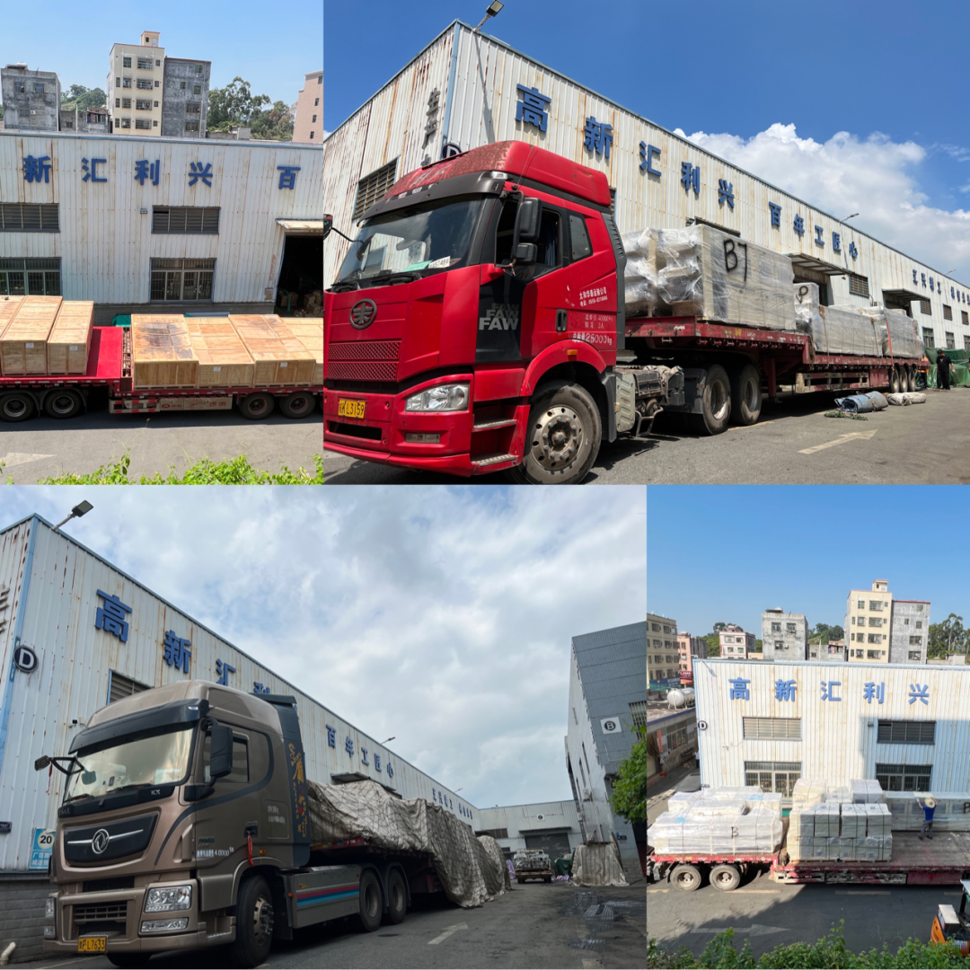 ,待檢查完,滿載貨物的數(shù)輛運(yùn)輸車緩緩駛出,發(fā)往客戶項(xiàng)目現(xiàn)場。